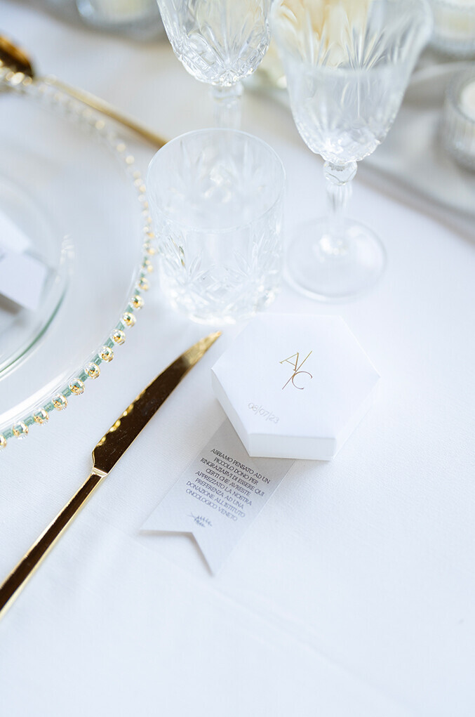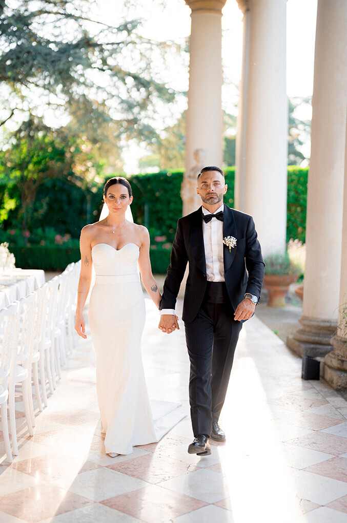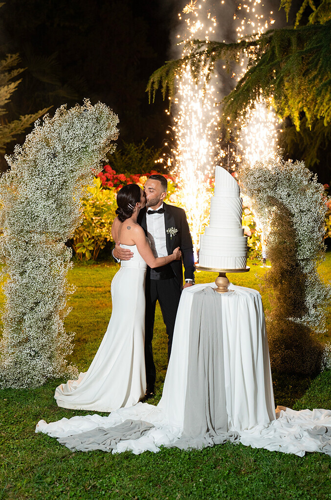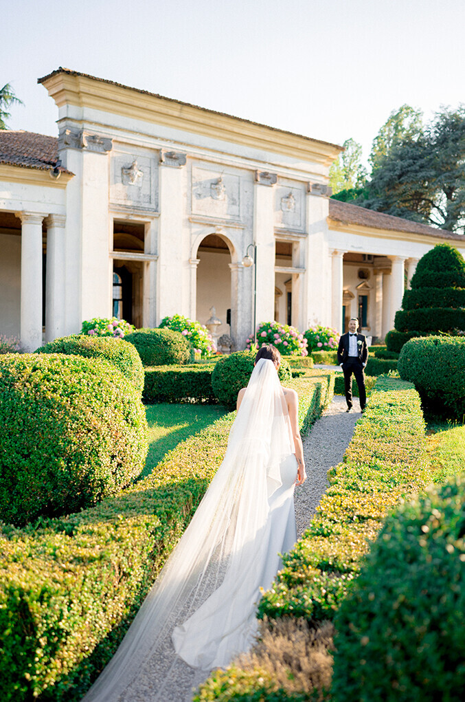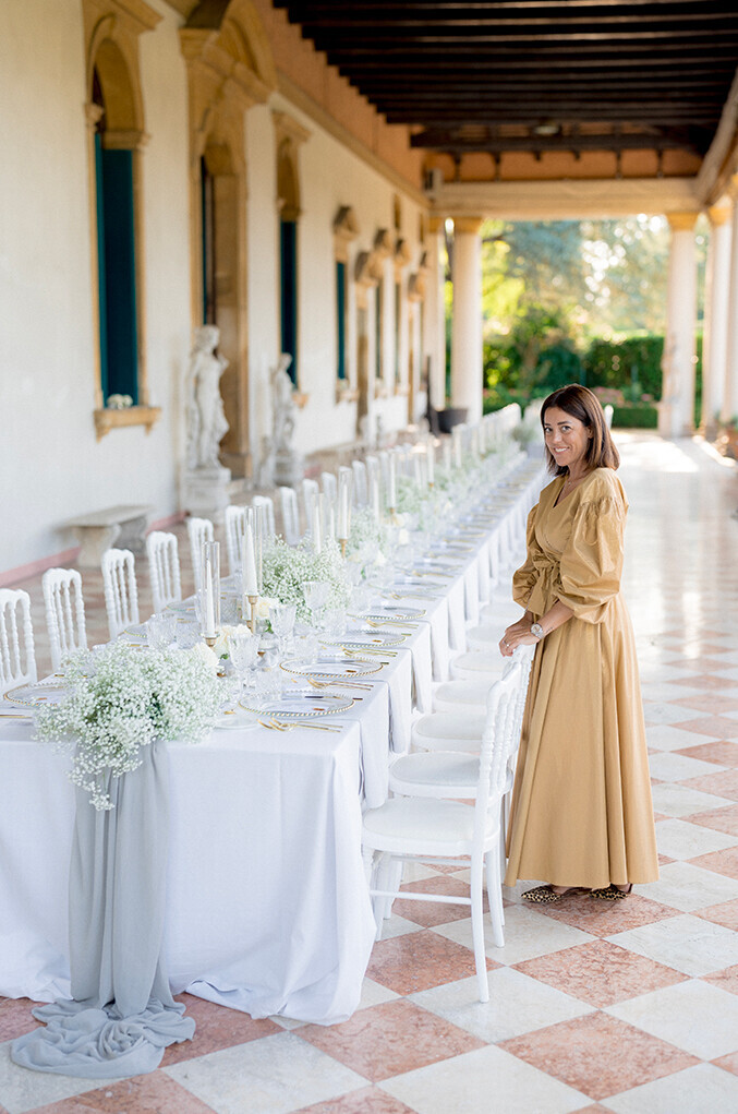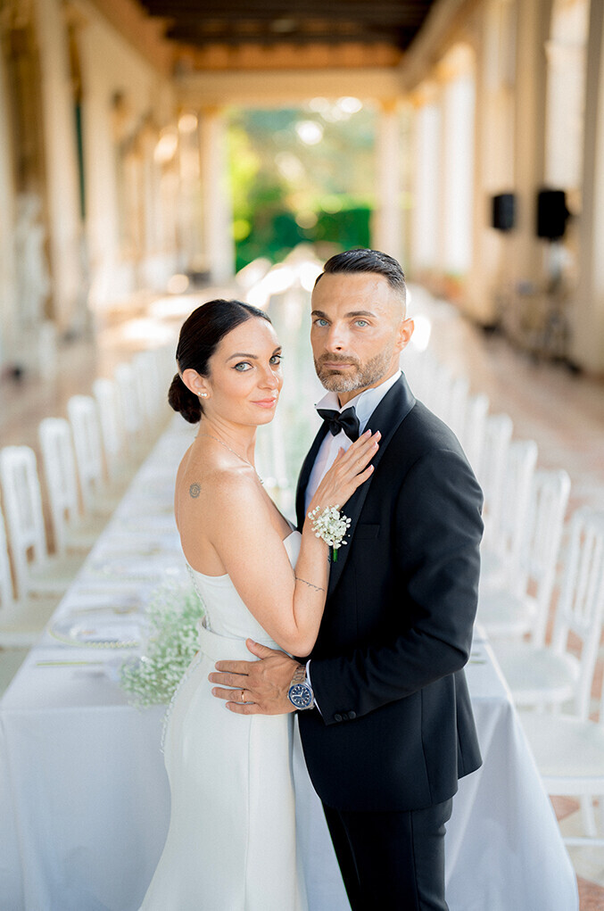 Nell’incantevole cornice di Villa Valmarana, residenza del ‘600 nella Riviera del Brenta, Alessandra e Cristian hanno convolato a nozze con una romantica cerimonia civile nei curatissimi giardini della venue avvolti in una scultorea scenografia floreale di gipsofila, infiorescenza che ha accompagnato l'intero evento, una leggerezza bilanciata da una nota di carattere stilistico grazie alla creazione moderna e geometrica della stationery e degli accessori.