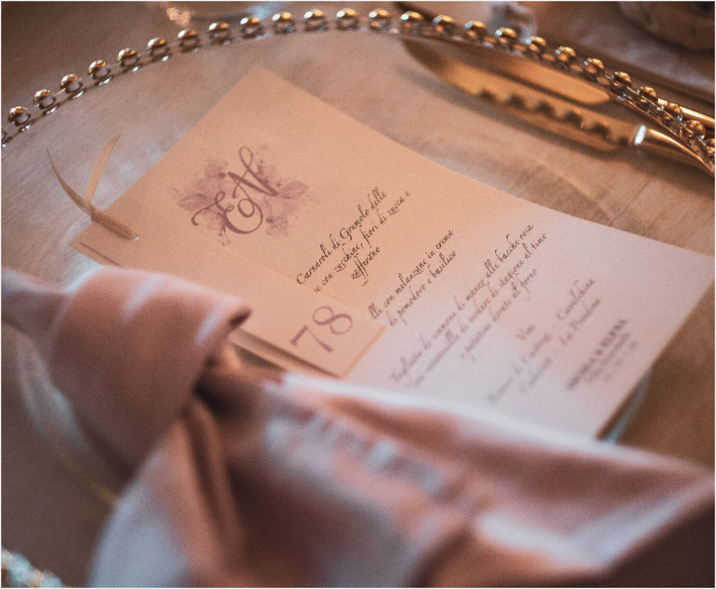 Mi occupo personalmente della creazione grafica e di tutti gli accessori coordinati. Questo tocco esclusivo è ciò che rende unico l’evento, creando un filo conduttore che avvolge gli ospiti in un’atmosfera coerente e ricercata.