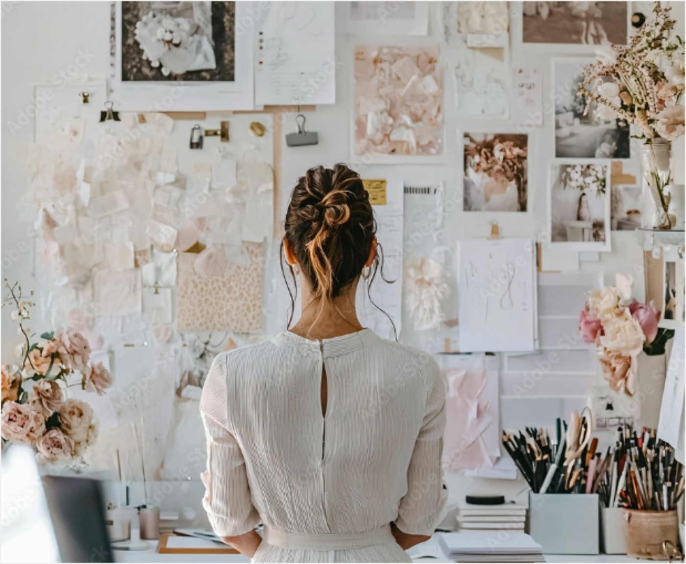 Una volta raccolti i vostri desideri, sviluppo un concept esclusivo che rifletta il vostro stile e personalità. Ogni dettaglio, dalla palette di colori ai temi ispiratori, viene pensato per rispecchiare la vostra storia.