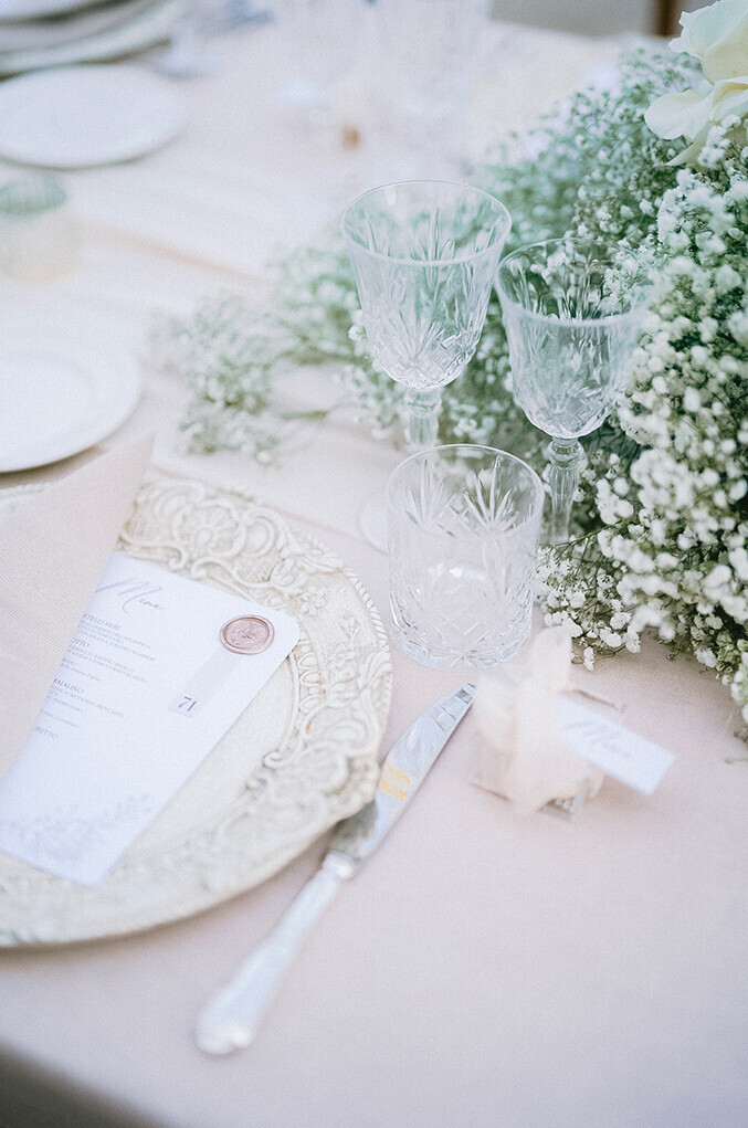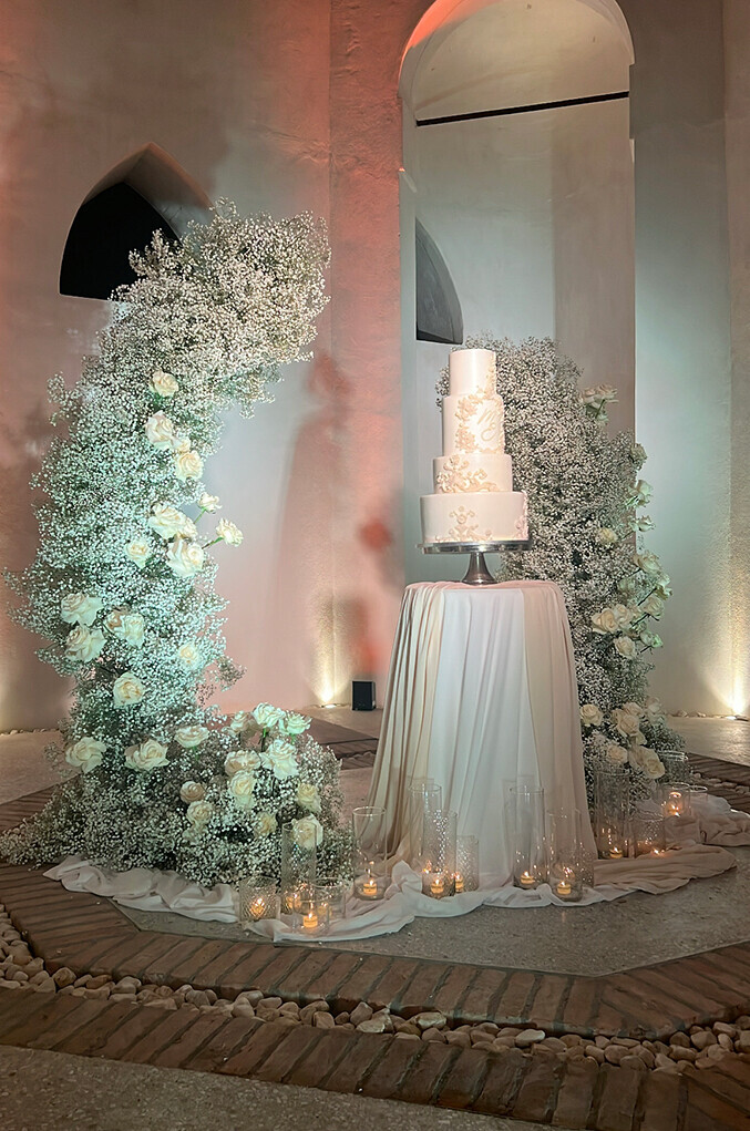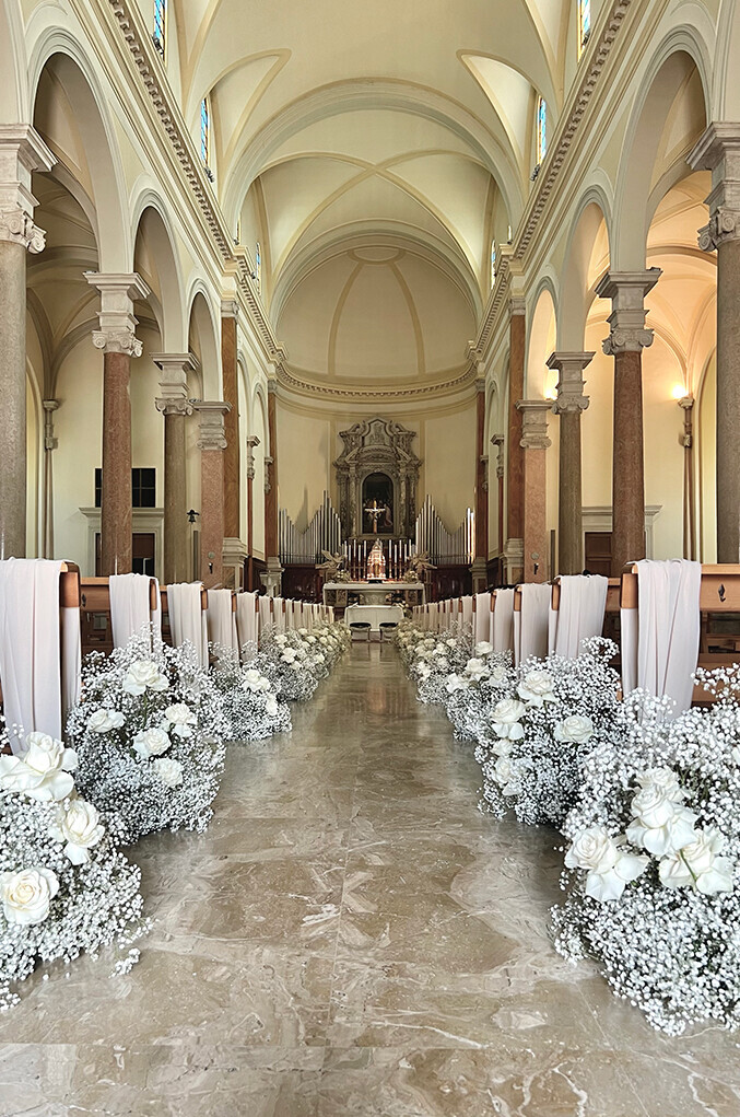 Pieni di aspettative per il loro grande giorno si sono fatti incantare da nuvole asimmetriche di gipsofila e rose bianche incorniciati da nuance dai colori neutri ed eterei che hanno donato alla cerimonia un’entrata fiabesca per il corteo nuziale.