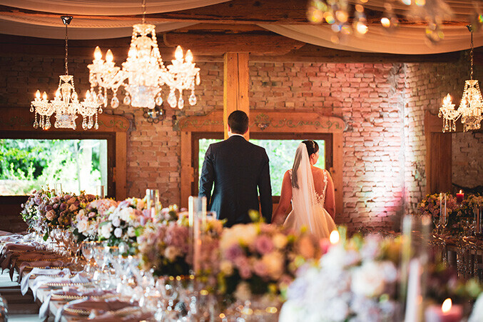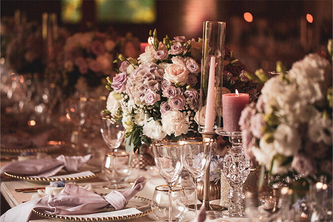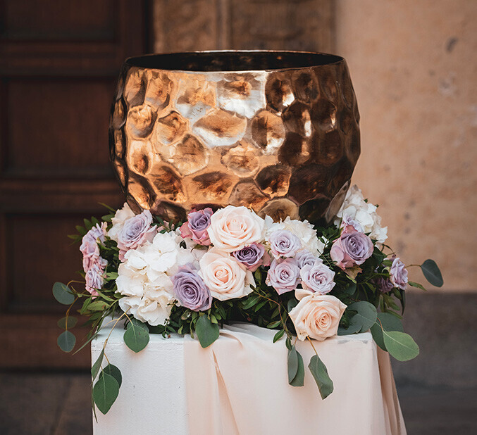 Elena e Nicola si sono uniti con un rito religioso nella splendida chiesa di San Nicolò, nel cuore di Padova, avvolta da preziosi tessuti color malva e ricchi accessori dorati hanno reso tutto meravigliosamente elegante e raffinato. Nella venue li ha attesi un ricevimento regale coronato da bouquet di fiori dagli incredibili colori, un placè delicato e trionfante meticolosamente arricchito da tantissimi dettagli lussuosi.