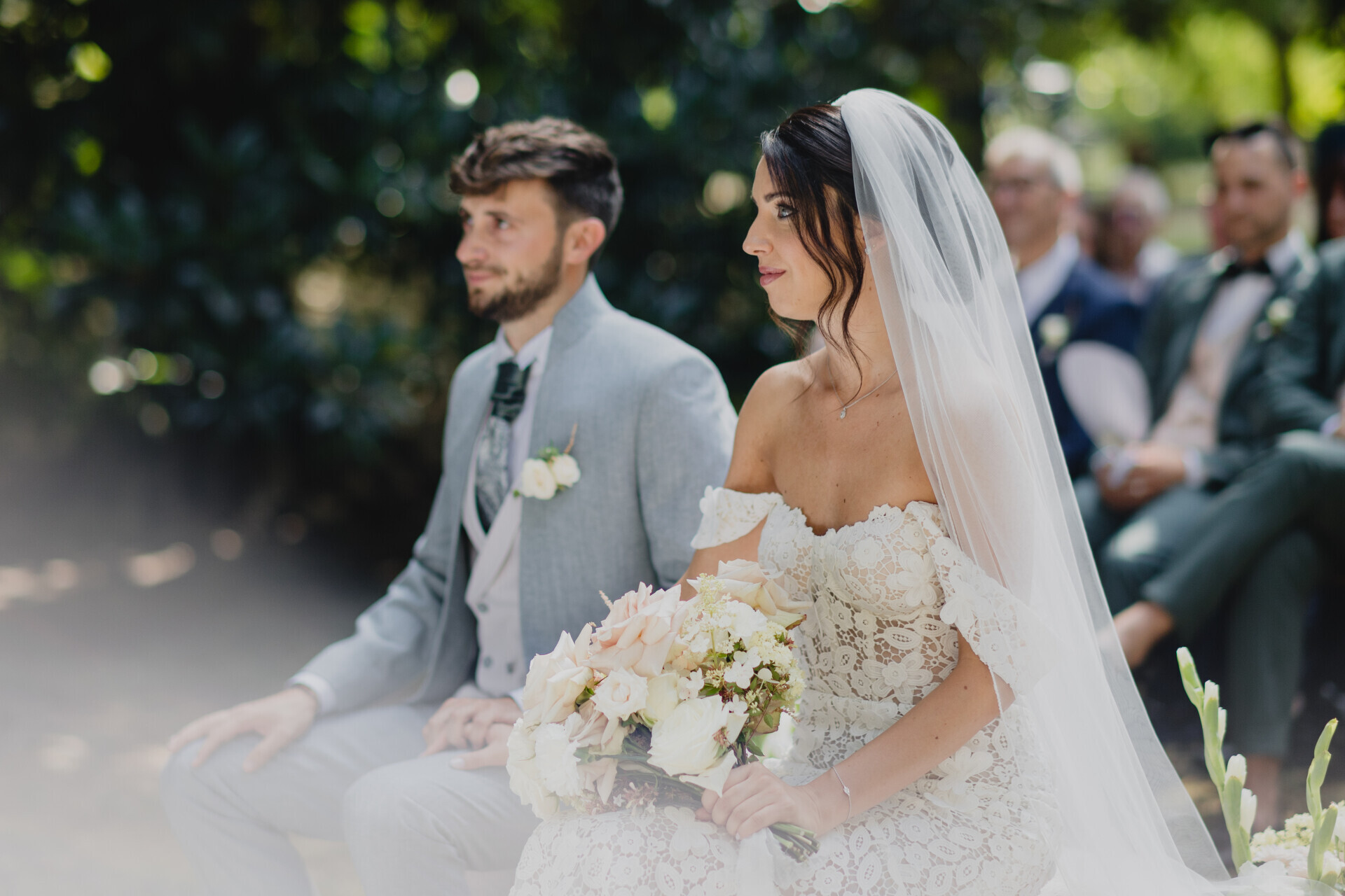 Villa Selvatico, con la sua maestosità e la vista mozzafiato, è stata la cornice perfetta per un giorno intriso di magia. La cerimonia civile, celebrata da un caro amico degli sposi, è stata intima e profondamente romantica: un momento autentico, ricco di emozione e di sorrisi.