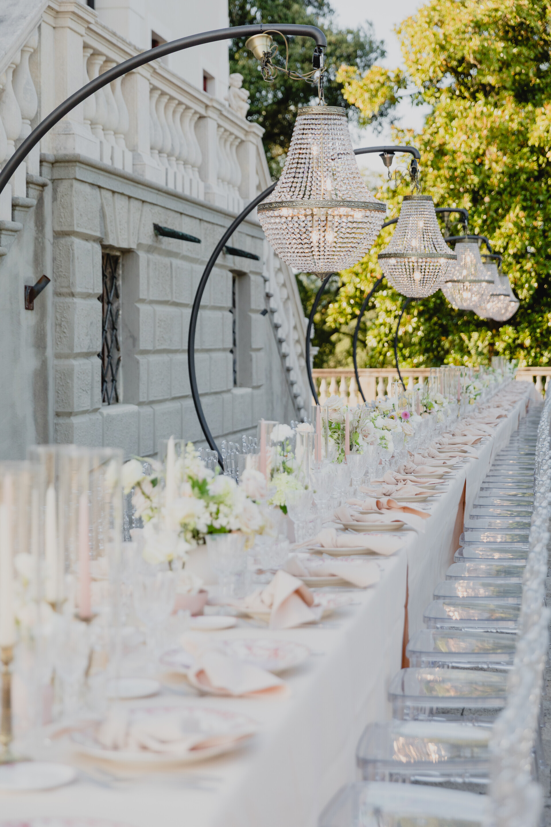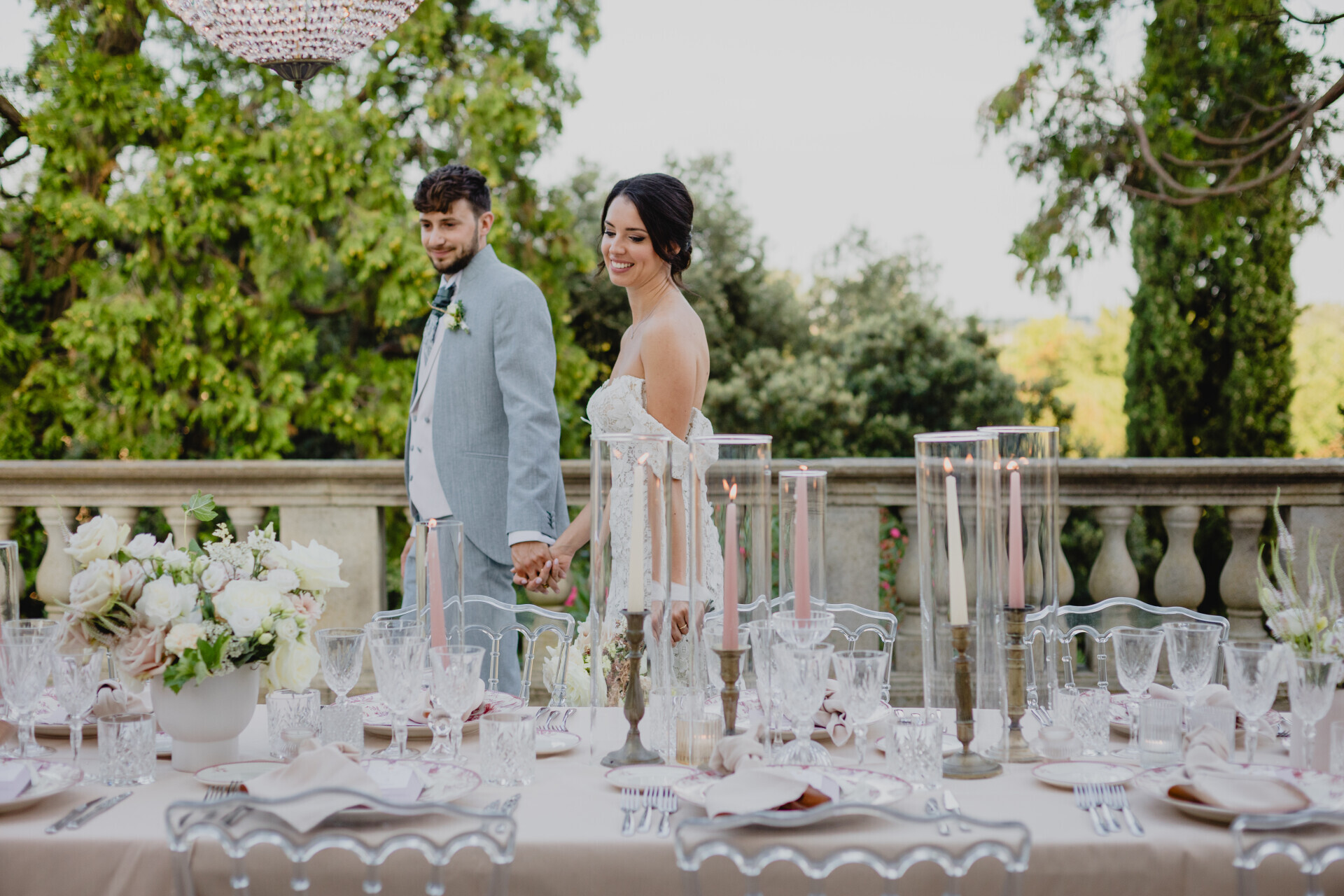 Ho voluto che ogni dettaglio raccontasse la loro storia con eleganza e modernità, unendo elementi scenografici d’avanguardia a uno stile raffinato e senza tempo. Gli sposi, splendidi e complici, sembravano davvero i protagonisti di una favola moderna.